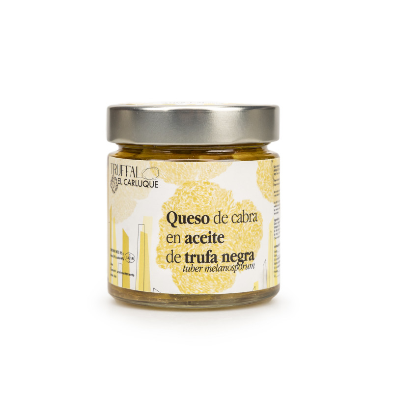 El Queso de Cabra de El Carluque en Aceite aromatizado con Trufa Negra (Tuber melanosporum). Un producto gourmet pensado para quienes disfrutan de los sabores auténticos y elegantes.
