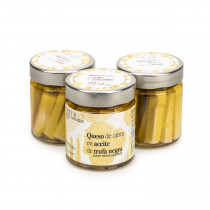 Queso de cabra artesanal de la quesería El Carluque en aceite de oliva trufado.